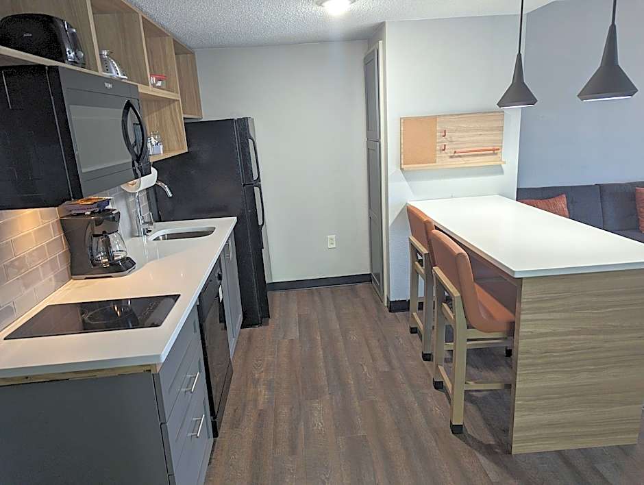 This room features a microwave, refrigerator, and a flat-screen cable TV.